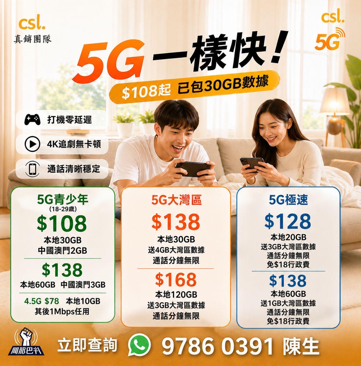 CSL 5G/4.5G 內部優惠|月費 $78 起,專人幫你揀最啱 Plan