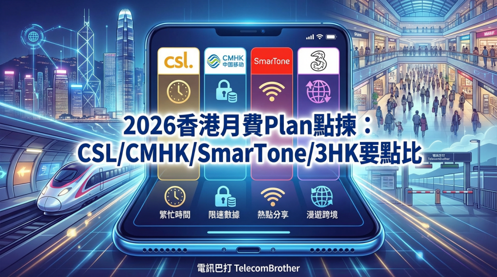 2026香港月費Plan點揀:CSL/CMHK/Smartone/3HK要點比