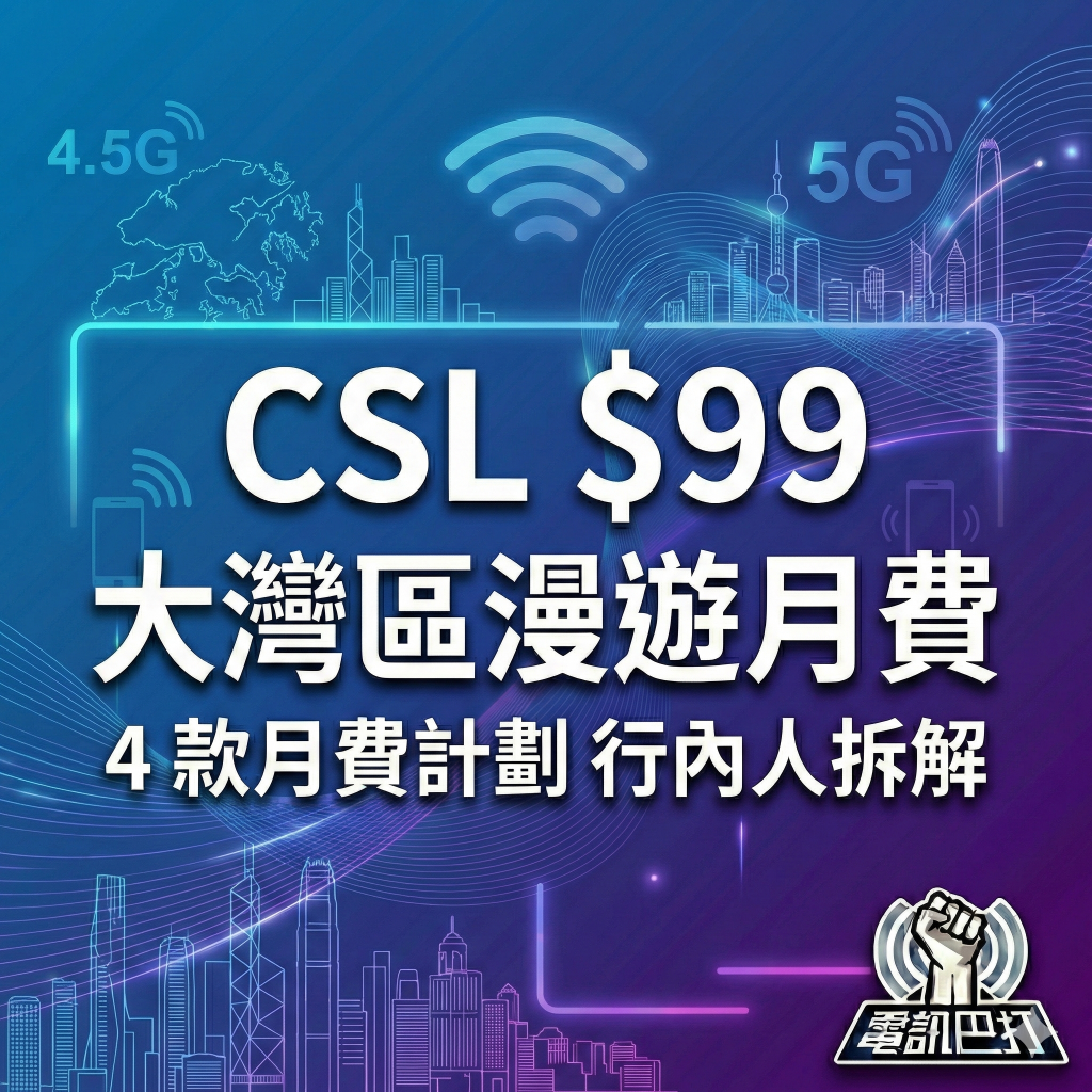 CSL $99 月費 CSL 大灣區漫遊 中港澳數據月費 CSL 漫遊計劃 最平大灣區月費 4.5G 月費 5G 月費 跨境上網 內地漫遊數據 手機月費比較 CSL 月費推薦 中港澳 Plan 轉台月費 香港 手機月費 電訊巴打