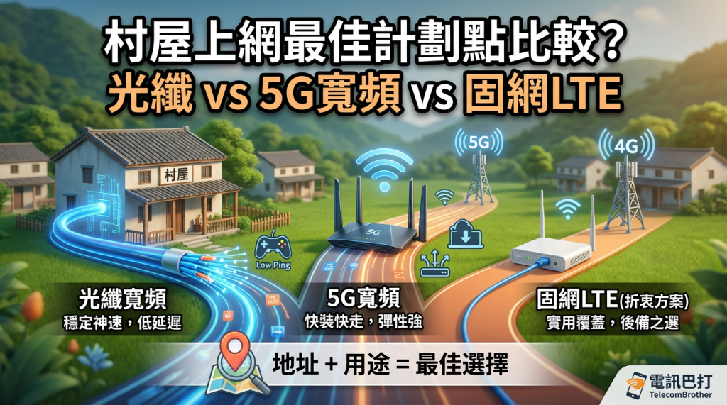 村屋上網最佳計劃點比較?光纖 vs 5G寬頻 vs 固網LTE