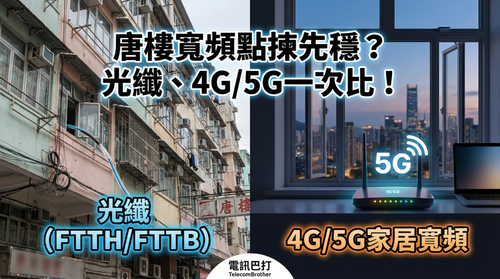 #唐樓寬頻點揀先穩, 唐樓寬頻比較, 唐樓光纖入屋, 5G 家居寬頻 唐樓, 3HK 5G 家居寬頻, 5G Router 推薦, 打機 Ping 穩定, 唐樓裝寬頻, 寬頻不穩定, 香港寬頻比較, 唐樓裝唔到光纖點算?用 5G 家居寬頻穩唔穩?, 唐樓打機用光纖定 5G 家居寬頻先唔飄 Ping?, 唐樓晚晚寬頻慢係供應商問題定 Router 擺位問題?, 唐樓 FTTH 同 FTTB 有咩分別?點睇我係邊種入線?, 唐樓用 5G Router 放邊個位先穩?點睇 SINR/RSRP?, 唐樓一條長走廊 Wi‑Fi 好弱點搞?要唔要 Mesh?, 唐樓開 Zoom 成日爆音點改善?係上載定 jitter 問題?, 唐樓 4G 反而穩過 5G 係咪正常?咩情況會咁?, 唐樓光纖明明 1Gbps 但房入面好慢點解?, 唐樓寬頻點樣測試先知真穩定?要測幾耐?