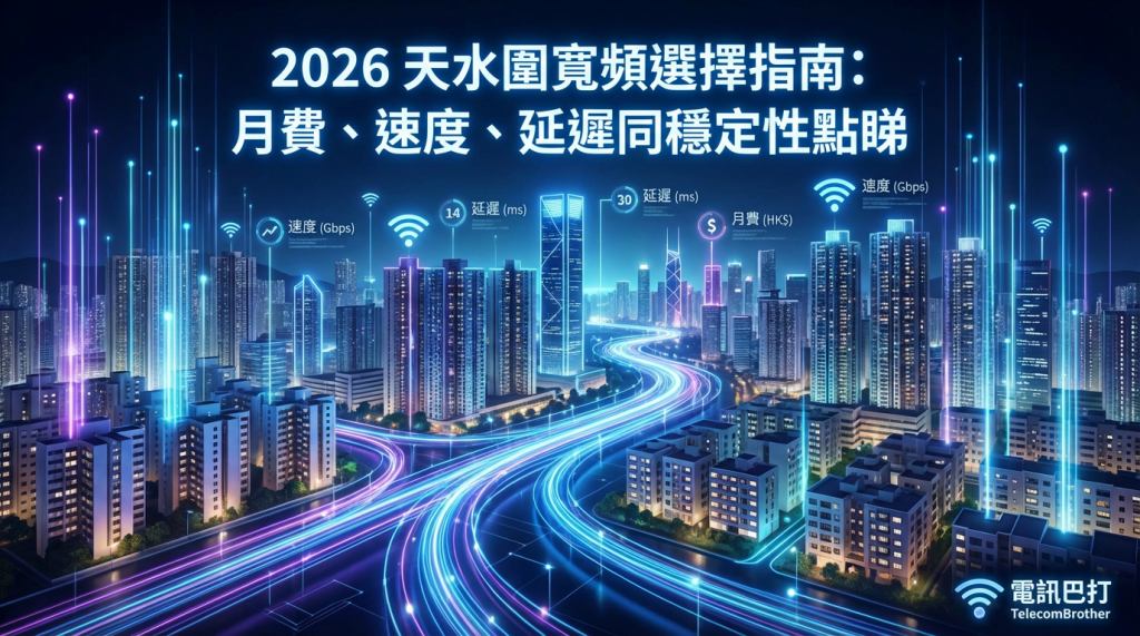 天水圍寬頻, 2026 天水圍寬頻選擇指南, 天水圍寬頻月費, 天水圍寬頻速度, 天水圍寬頻延遲, 天水圍寬頻穩定性, FTTH 光纖入屋, FTTB 光纖到大廈, 5G 家居寬頻, Router 擺位, Mesh Wi‑Fi, 晚高峰跌速, 天水圍寬頻邊間穩定 2026, 天水圍打機 ping 低應該揀咩寬頻, 天水圍晚高峰寬頻會唔會跌速, 天水圍 FTTH 同 FTTB 有咩分別, 天水圍 5G 家居寬頻穩唔穩, 天水圍寬頻月費點樣計有效月費, 天水圍 WFH 視像會議上載要幾多, 天水圍 Router 放弱電箱會唔會慢, 天水圍 Mesh Wi‑Fi 點樣擺位先穩, 天水圍寬頻 jitter 同丟包點樣測