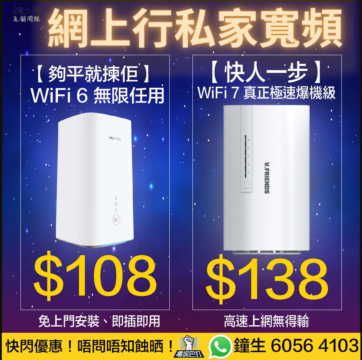 網上行寬頻-【網上限定$108】Netvigator寬頻plan, 另有快閃2500M網上行寬頻 名額有限!!