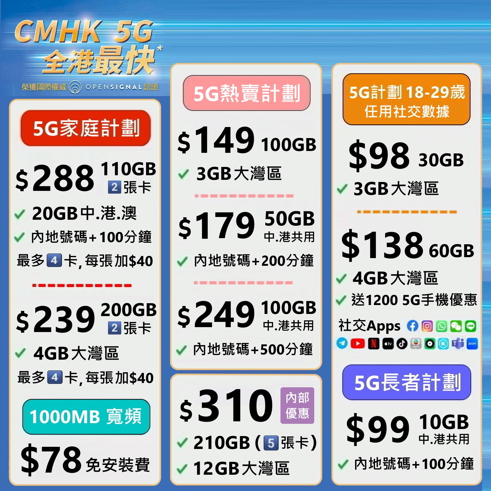 🔥🔥中移動超抵5G月費計劃🔥🔥