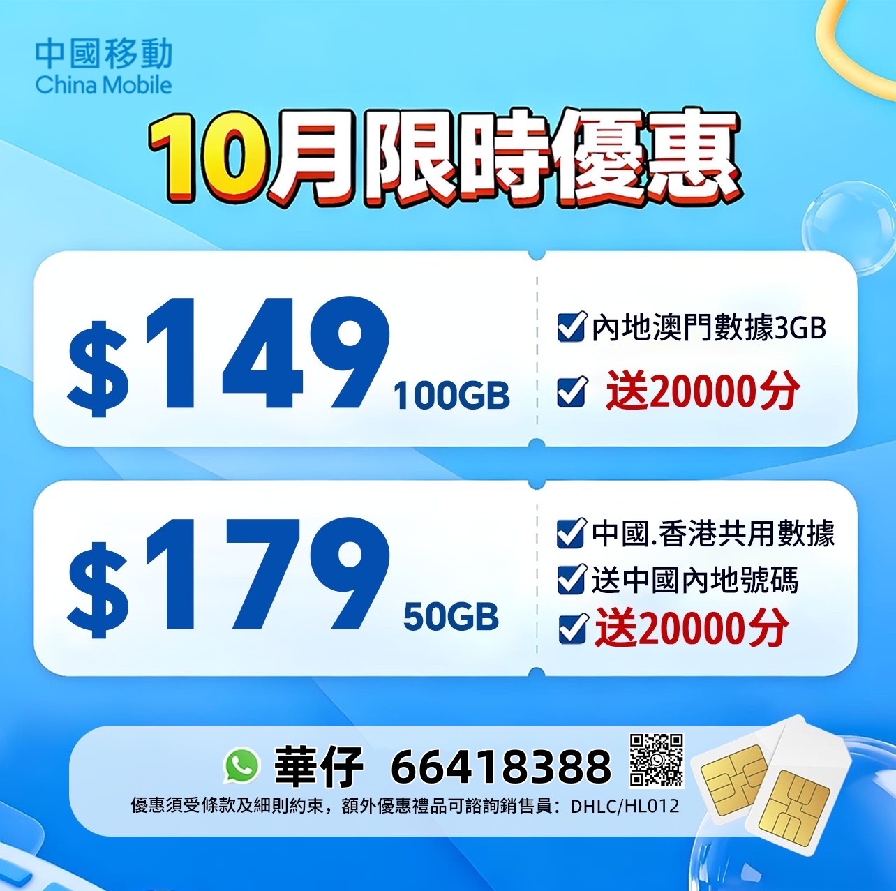 ☎️中國移動☎️全港最平☎️轉台新優惠☎️☎️