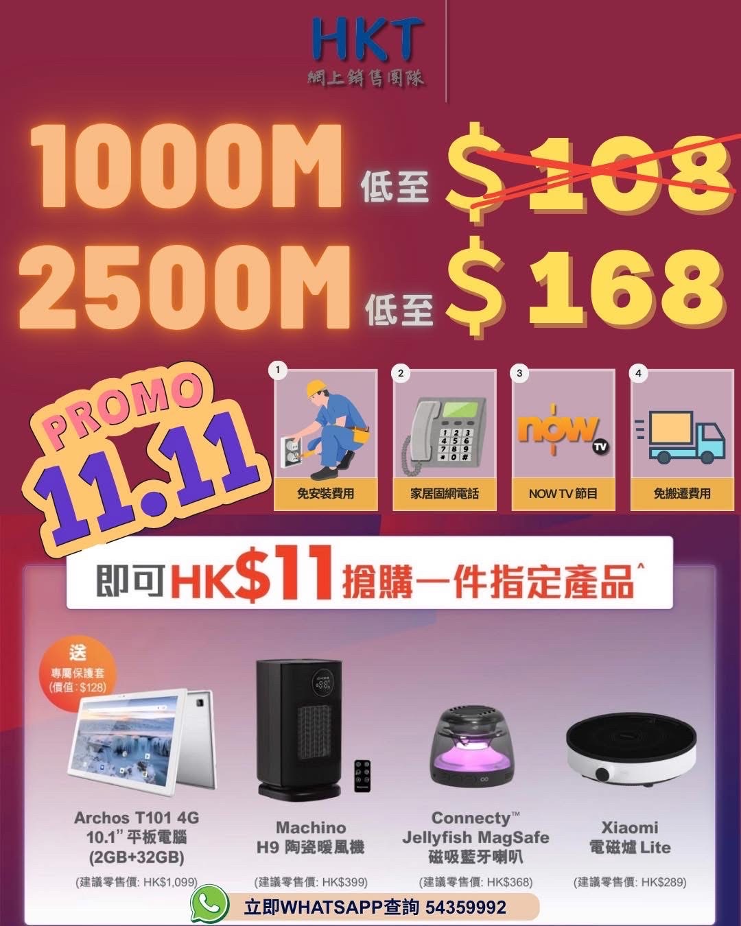 - 💻$88 1000MB寬頻加電話 ☎️送wifi🛜
