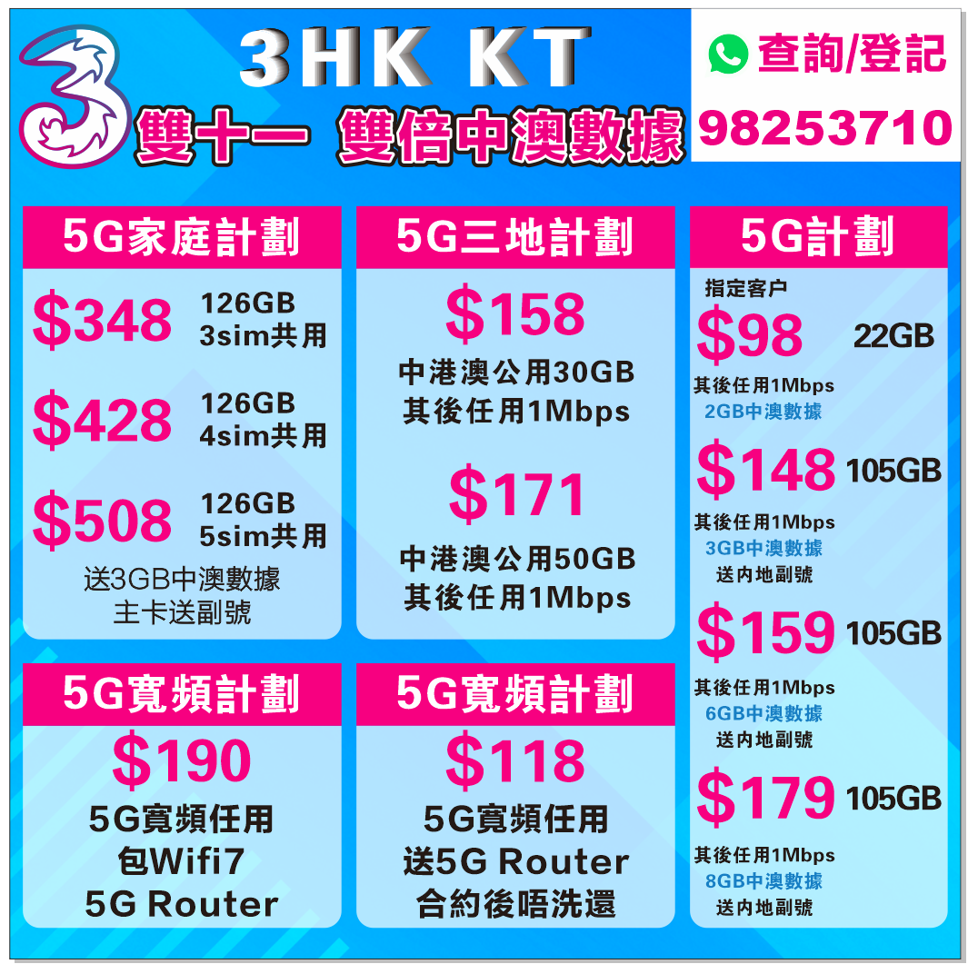 ⭐️3HK ⭐️5G全速上網✅雙十一優惠