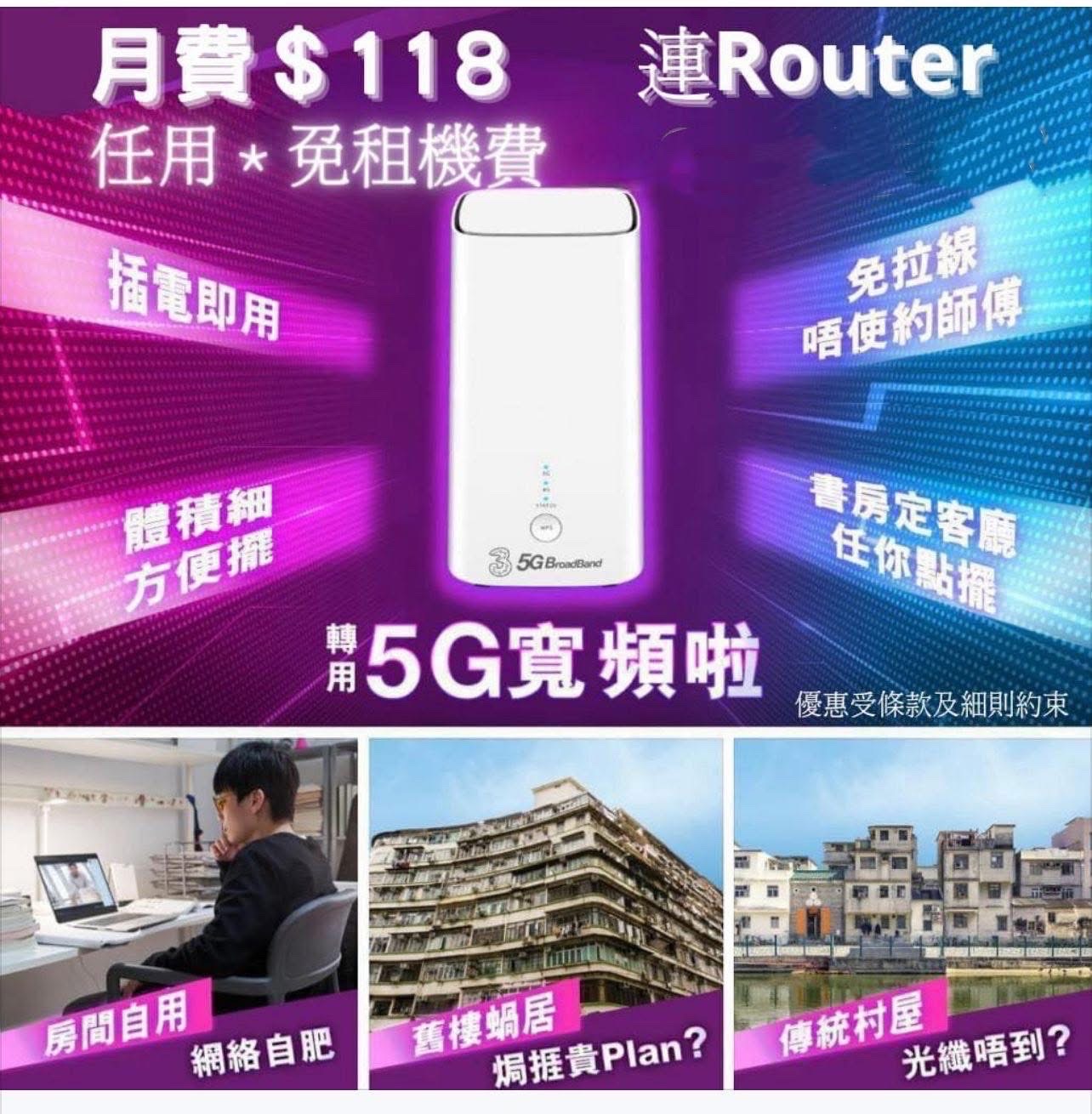 【3HK 5G家居寬頻優惠】月費$103起 免拉線|即插即用|WiFi6/7 Router 免費送|最快即日上門測試