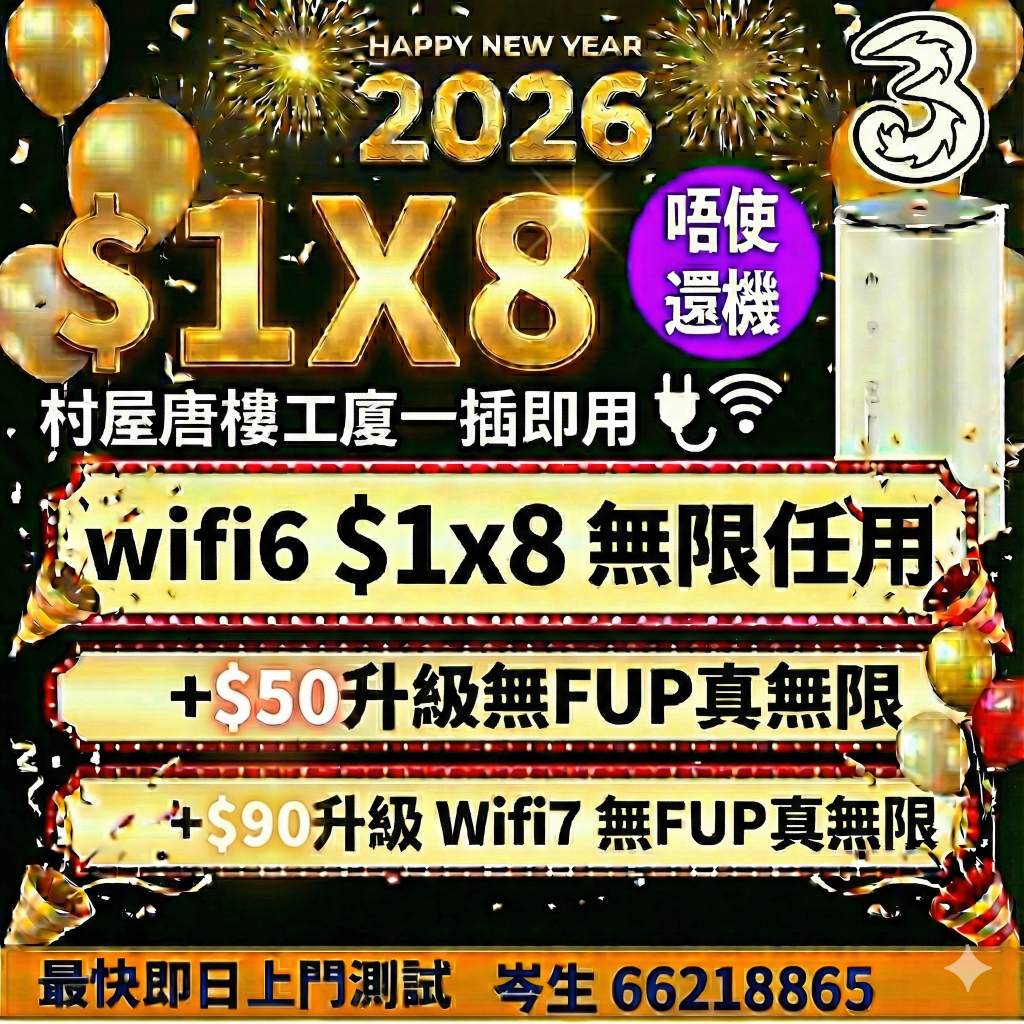 【3HK 5G家居寬頻優惠】月費$1X8起 免拉線|即插即用|WiFi6/7 Router 免費送|最快即日上門測試