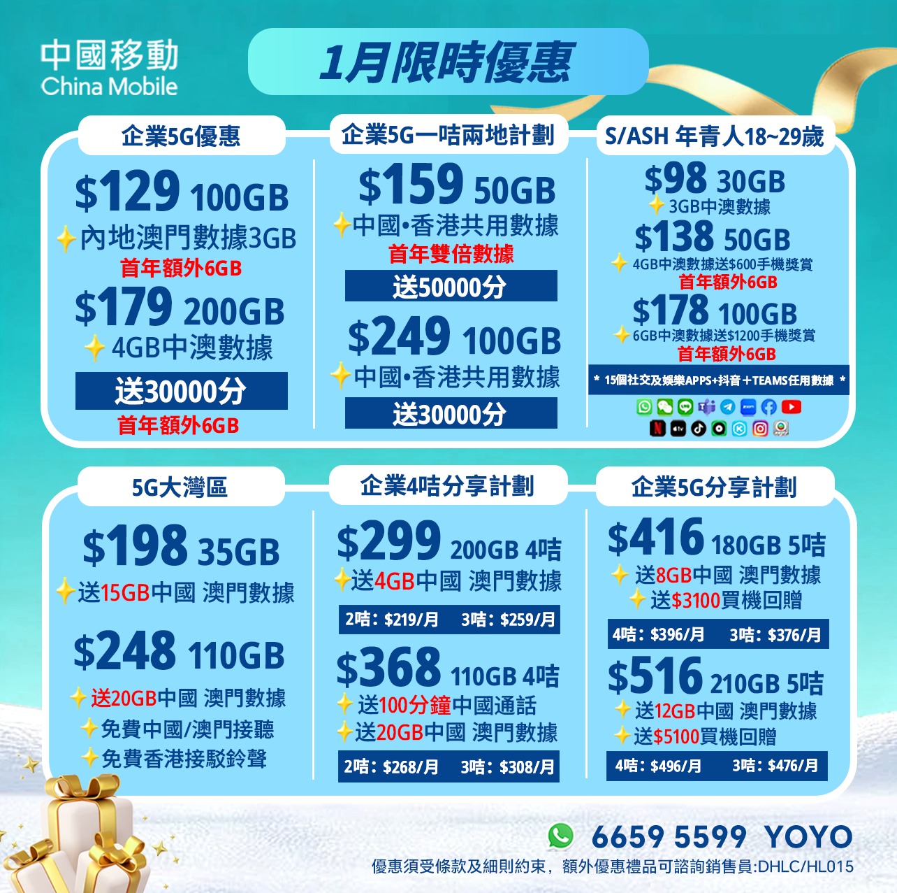 💖💖中國移動Yoyo 1月 最貼心優惠💖