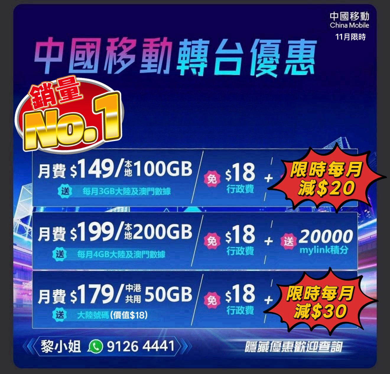 - -5G中國移動 🟠11月🟠5G轉台優惠跳樓價$$$💚,仲去門市?