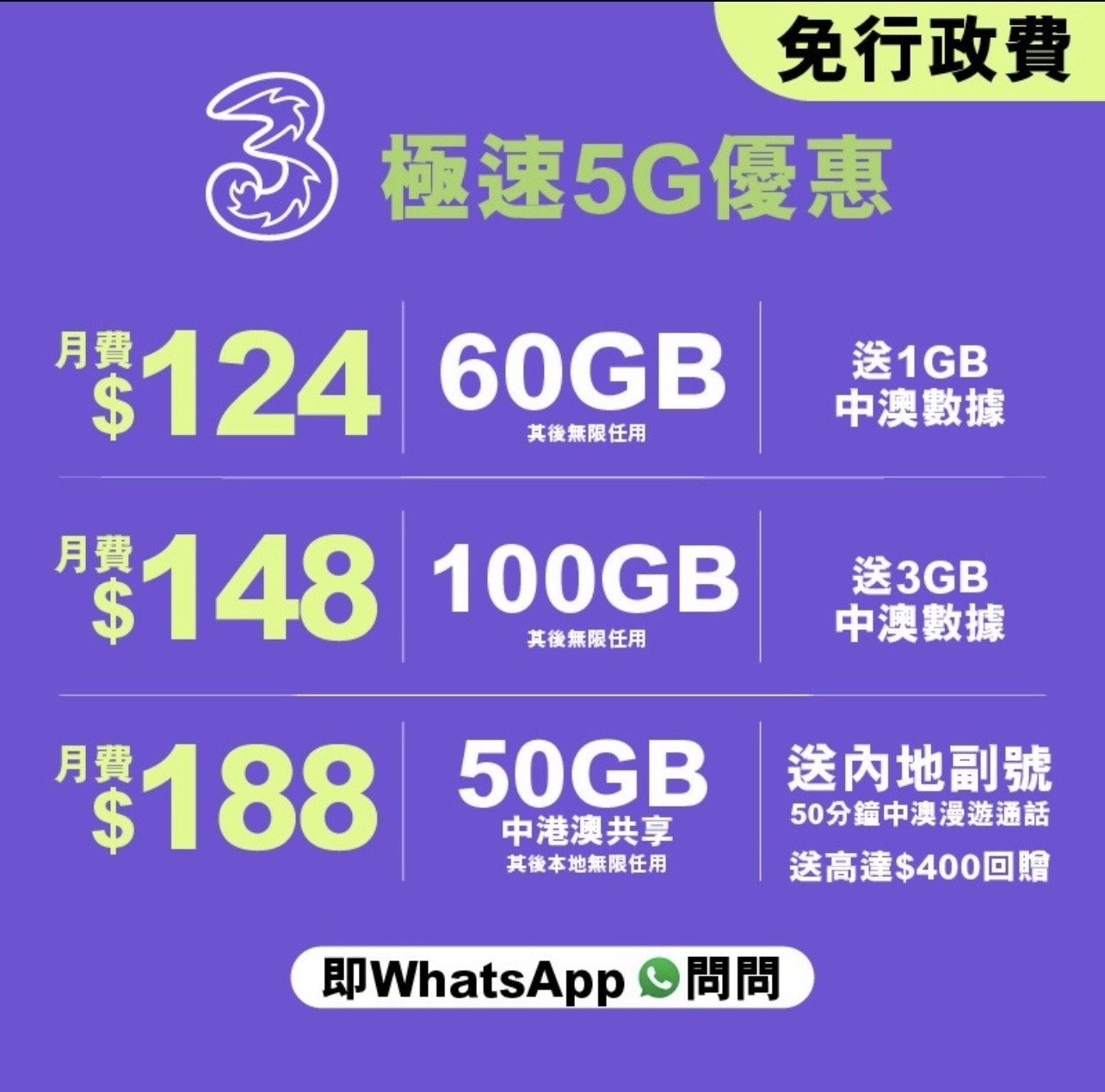 - 即刻 WhatsApp / Telegram 查詢3hk月費計劃詳情,專人即時報價,幫你搵出最啱用又最抵嘅 Plan!