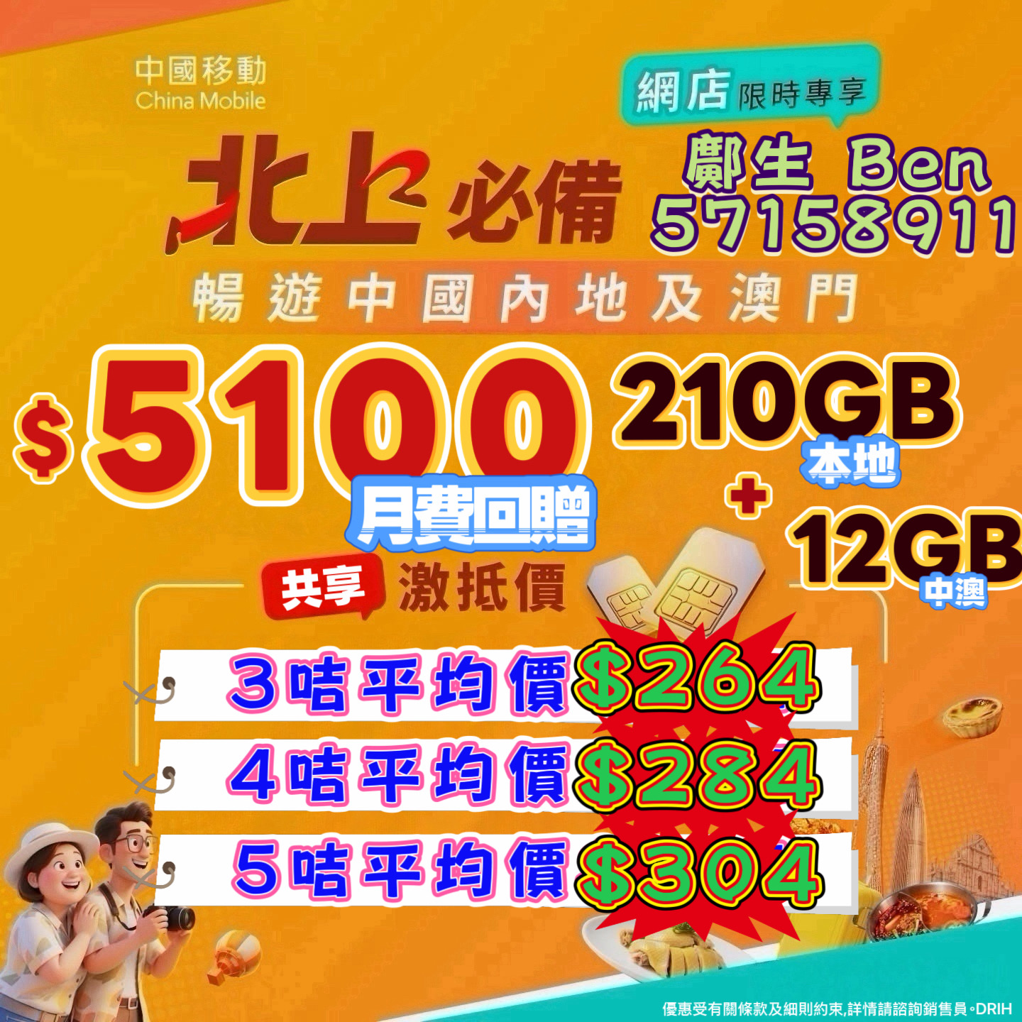 - 5G 家庭優惠(5卡) ↔️$516- 210GB本地全速數據 📶12GB中國漫遊數據+澳門