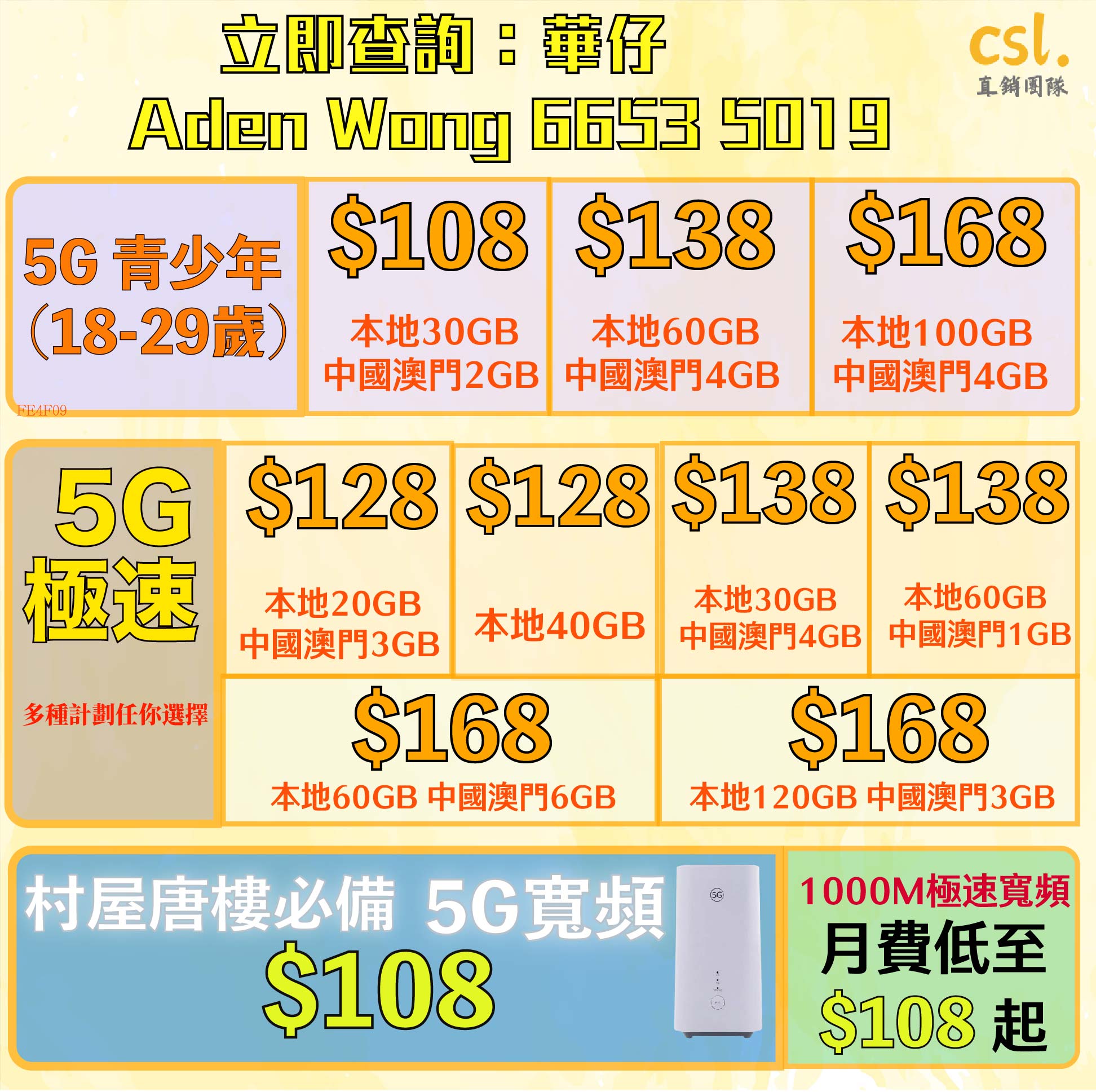 🔥🔥csl. 4.5G / 5G手機轉台內部優惠 🔥🔥$168 5G全速120GB / $138 5G全速60GB / $78 4.5G網絡20GB無限任用