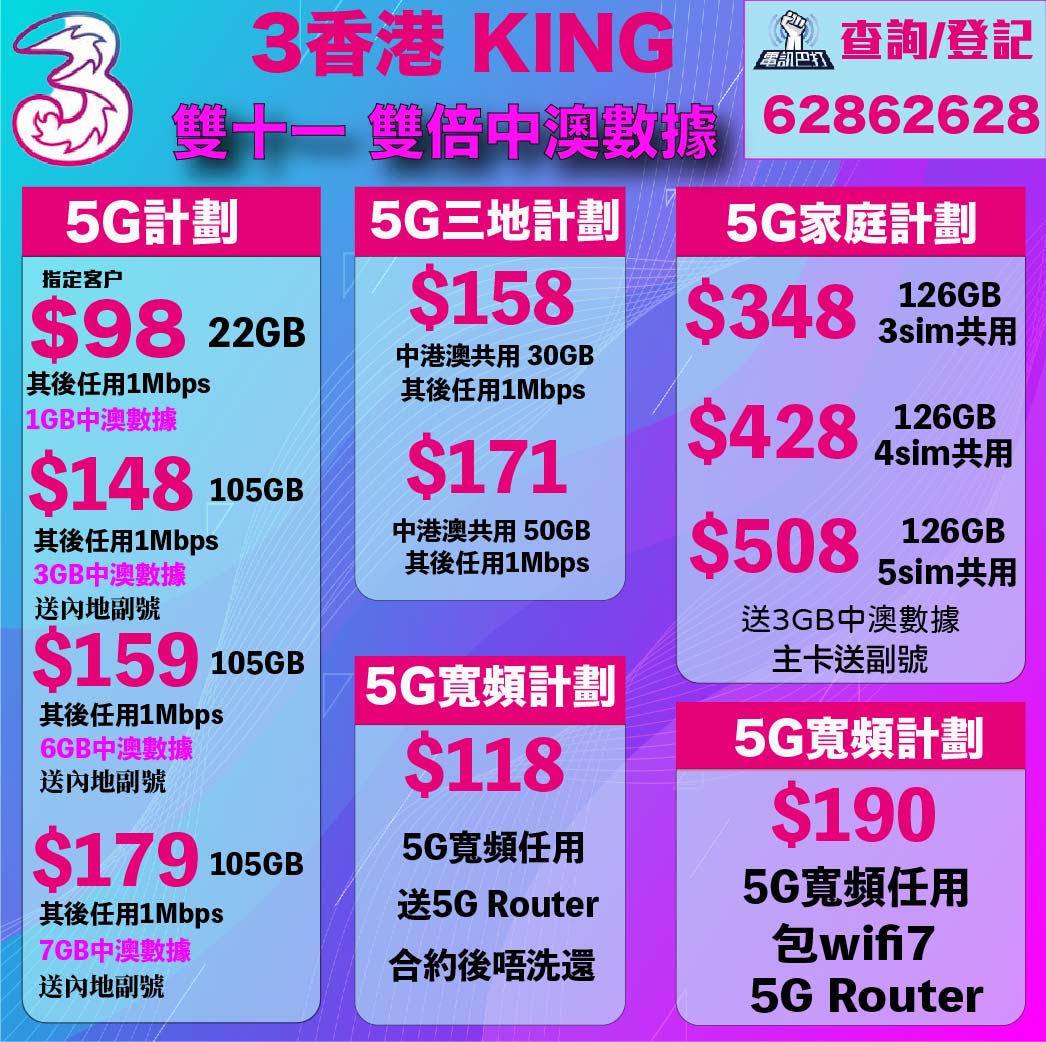 💎 3香港皇牌優惠巡禮・總有一個Plan啱你,5G月費低至$98起 💎
